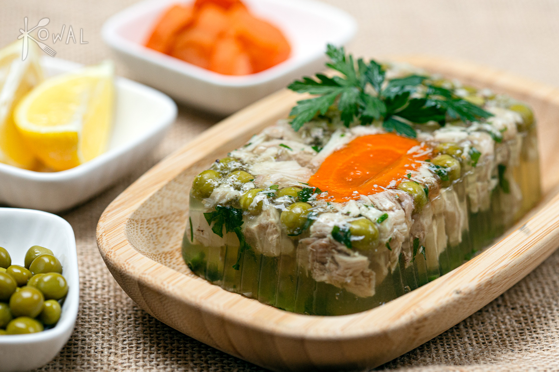 Nasza domowa galaretka z kurczaka to klasyk, który nigdy nie zawodzi. Powstaje z delikatnego mięsa drobiowego gotowanego na aromatycznym wywarze z warzyw, z dodatkiem naturalnych przypraw – bez sztucznych ulepszaczy i innych cudów z laboratorium.